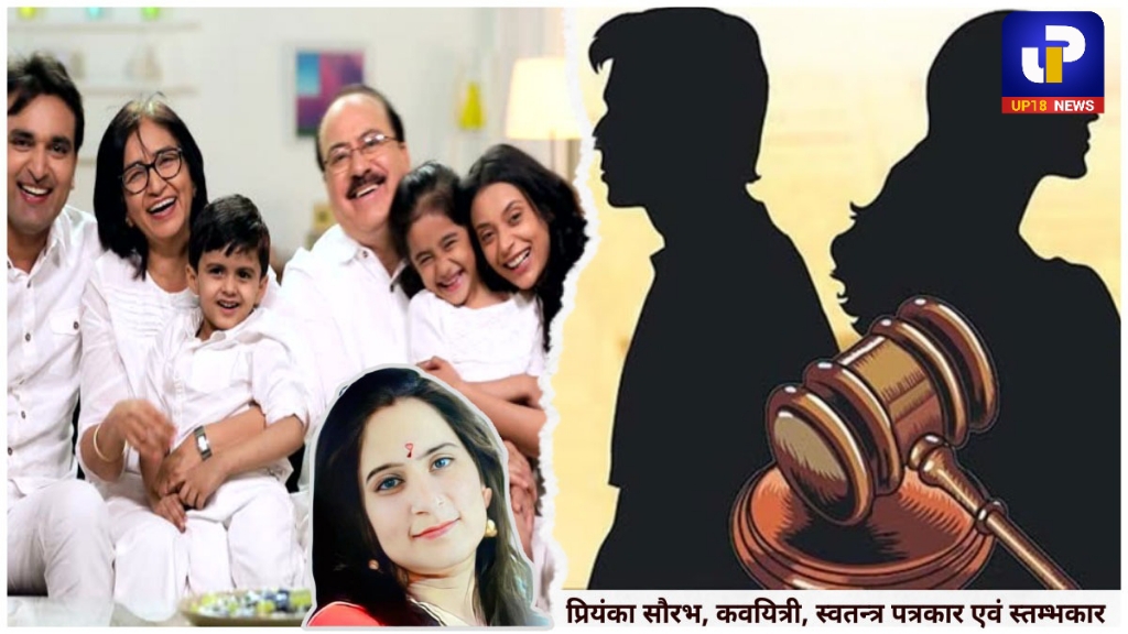 परिवार, भारतीय समाज में, अपने आप में एक संस्था है और प्राचीन काल से ही भारत की सामूहिक संस्कृति का एक विशिष्ट प्रतीक है। नैतिक मजबूती के साथ-साथ यह व्यक्ति के परिवार के सदस्यों, रिश्तेदारों को बिना किसी हिचकिचाहट के कठिन समय में भरोसा करने के लिए लचीलापन प्रदान करता है। यह कठिनाइयों से निपटने के लिए अनैतिक साधनों के उपयोग से बचाता है। परिवार लोगों को सांसारिक समस्याओं के प्रति स्त्री के दृष्टिकोण को विकसित करने में मदद करता है। मगर वर्तमान दौर में हम संस्था के रूप में परिवार में गिरावट का कटु अनुभव झेल रहे है।