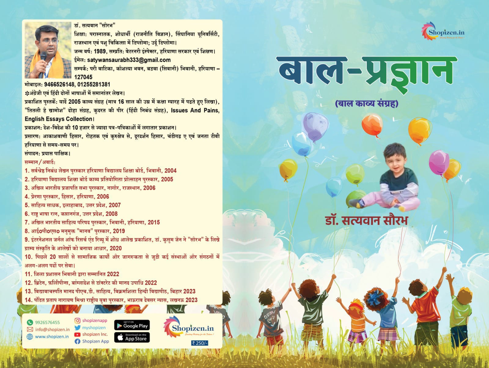 सन् 1989 में हरियाणा में जन्मे डॉ. सत्यवान सौरभ बालसाहित्य के एक सुपरिचित हस्ताक्षर हैं। साहित्यकार, पत्रकार और अनुवादक डॉ. सत्यवान सौरभ ने बच्चों के साथ ही बड़ों के लिए भी विपुल साहित्य सर्जन किया है। बाल कविता की पुस्तकों के साथ ही प्रौढ़ साहित्य में दोहा, कथा, कविता, अनुवाद, रूपान्तर, सम्पादन की कई कृतियों का सर्जन कर उन्होंने हिन्दी साहित्य में महत्त्वपूर्ण योगदान दिया है। बीस वर्षों से स्वतंत्र रूप से लेखन कर साहित्य को समृद्ध कर रहे हैं।