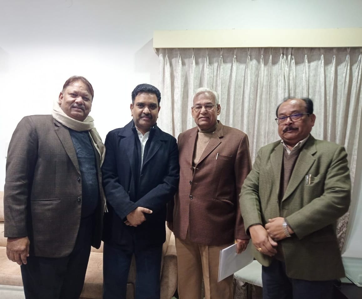सर्किट हाउस में जाटव समाज का प्रतिनिधि मंडल समाज कल्याण मंत्री असीम अरुण से वार्ता करते हुए देवकी नंदन सोन, महेश कर्दम, विवेक जैन