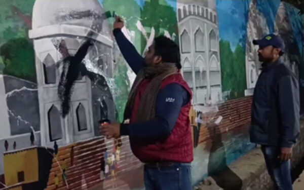 आगरा। जी-20 देशों के स्वागत के लिए आगरा शहर पूरी तरीके से तैयार हो रहा है। शहर को दुल्हन की तरह सजाया जा रहा है वहीं जिन रास्तों से जी-20 समिट के दौरान आने वाले प्रतिनिधि गुजरने वाले हैं उन रास्तों को खूबसूरत बनाया जा रहा है। इस दौरान वॉल पेंटिंग की जा रही हैं। वहीं इन वॉल पेंटिंग में खासकर ब्रज की संस्कृति और धरोहर को उकेरा जा रहा है। इसके साथ ही ब्रज क्षेत्र का काशी कहे जाने वाले बटेश्वर मंदिर का चित्र ईदगाह रोड़ पर बनाए गया है। वहीं दीवारों पर आगरा के गुरुद्वारे और मंदिरों के चित्र बनाए गए हैं। हालांकि अब इन चित्रों का विरोध होने लगा है। हिंदूवादियों ने इन चित्रों पर कालिख पोत दी है।