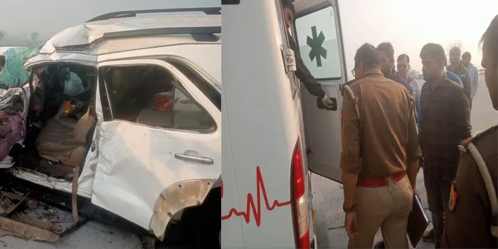 आगरा: कामधेनु स्टील धौलपुर के मालिक नवीन जिंदल उम्र 60वर्ष पुत्र शांति प्रसाद निवासी 14/101 राजनगर गाजियाबाद लोहा व्यापारी अनिल गोयल उम्र 65वर्ष पुत्र रामानंद गोयल निवासी 328ए पटेल नगर पिलखुआ रोड हापुड़ अपने दामाद अंशुल मित्तल के साथ फार्च्यूनर कार से बागेश्वर धाम आर्थिक रूप से कमजोर कन्याओं का विवाह कराने के लिए जा रहे थे। शनिवार सुबह आठ बजे आगरा की तरफ से फार्च्यूनर कार जा रही थी, टोल प्लाजा पार करने के बाद रॉग साइड में चलने लगे।