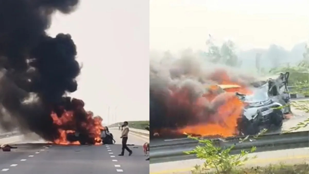 प्रत्यक्षदर्शियों के अनुसार वैगनार कार सड़क किनारे खड़ी थी, तभी पीछे से आई ब्रेज़ा कार ने तेज रफ्तार में टक्कर मार दी। टक्कर के बाद वाहन पल भर में जलने लगे। स्थानीय लोग और पुलिस तुरंत मौके पर पहुंचे और राहत-बचाव कार्य शुरू किया।