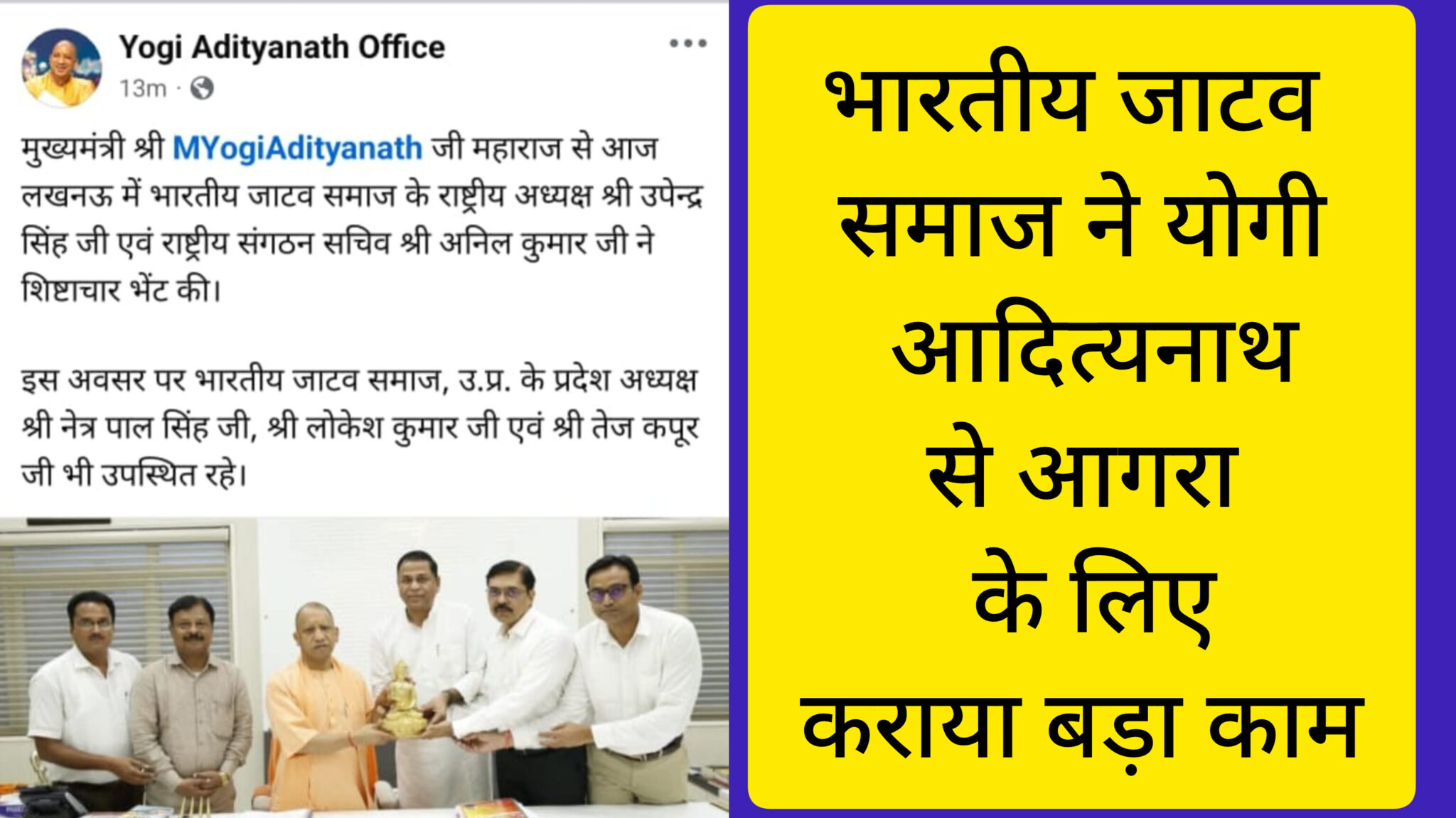 भारतीय जाटव समाज ने योगी आदित्यनाथ से आगरा बुद्धा पार्क के लिए कराया बड़ा काम