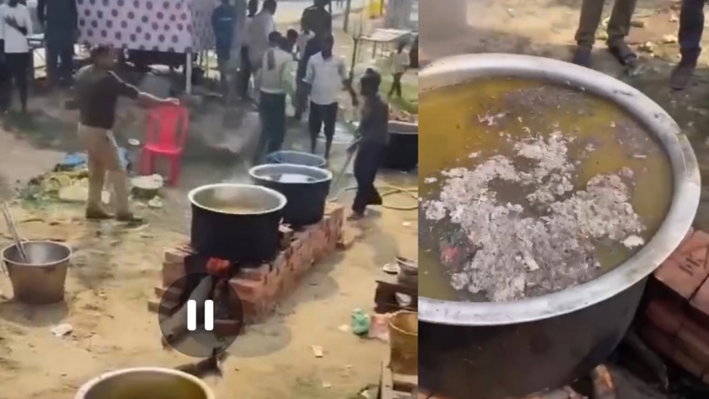 इस घटना का एक वीडियो सोशल मीडिया पर तेजी से वायरल हो रहा है। वीडियो में देखा जा सकता है कि एक पुलिसकर्मी खाना बनाने वाले एक बर्तन में मिट्टी और राख़ लेकर आता है और खाने में मिट्टी डाल देता है। जिससे पूरा खाना खराब हो जाता है। प्रदेश के पूर्व सीएम अखिलेश यादव ने इस घटना का वीडियो एक्स पोस्ट में शेयर करते हुए लिखा, “ये दुर्भाग्यपूर्ण है कि जो लोग महाकुंभ में फँसे लोगों के लिए भोजन-पानी की व्यवस्था कर रहे है उनके सद्प्रयासों के ऊपर राजनीतिक विद्वेषवश मिट्टी डाल दी जा रही है। जनता संज्ञान ले!”
