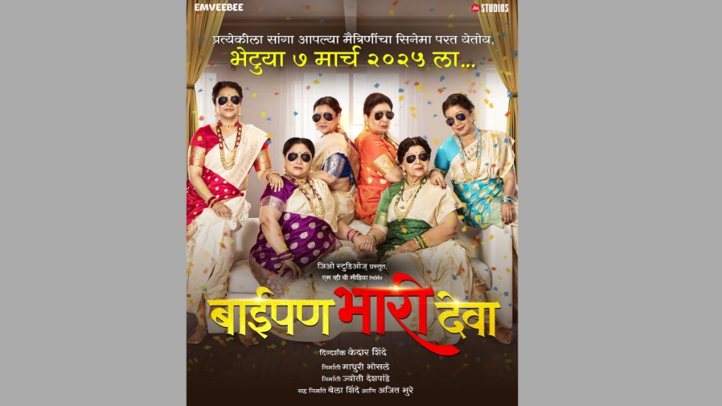 जियो स्टूडियोज द्वारा प्रस्तुत, माधुरी भोसले, ज्योति देशपांडे द्वारा निर्मित, बेला शिंदे और अजीत भूरे द्वारा सह-निर्मित, ‘बैपन भारी देवा’ में रोहिणी हट्टंगड़ी, वंदना गुप्ते, सुचित्रा बांदेकर, शिल्पा नवलकर, दीपा परब चौधरी और सुकन्या कुलकर्णी मोने सहित कई शानदार कलाकार हैं। फिल्म का मनमोहक संगीत साई-पीयूष द्वारा रचित है, और वैशाली नाइक द्वारा लिखा गया है।