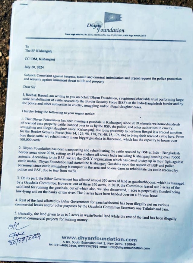 मुंबई (अनिल बेदाग ) : ध्यान फाउंडेशन की किशनगंज गौशाला पर पिछले कुछ दिनों में अलग अलग तरह से हमले किए गए। चौंकाने वाली बात यह है कि सब कुछ एसडीएम, एसडीपीओ, जिला पशुपालन पदाधिकारी, नगर निगम परिषद चेयरमैन इंद्रदेव पासवान, आदि अफसरों के सामने हुआ।