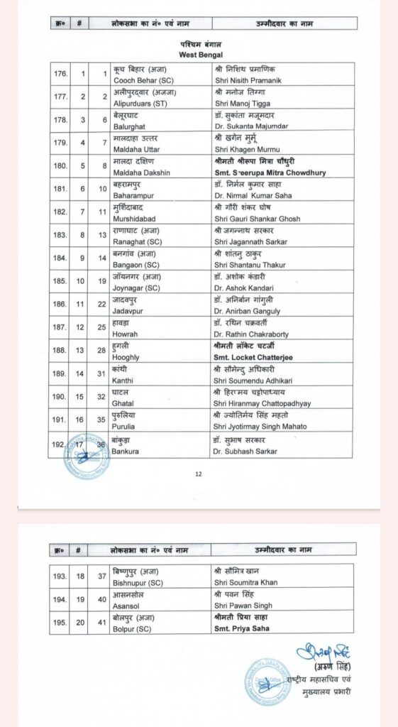 देखिए भारतीय जनता पार्टी द्वारा लोकसभा चुनाव 2024 के लिए घोषित उम्मीदवारों की लिस्ट ..