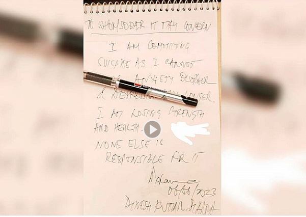 खबरों के मुताबिक, कमरे की तलाशी लेने के दौरान पुलिस को एक सुसाइड नोट मिला है। जो संभवतः रिटायर्ड आईपीएस दिनेश शर्मा के द्वारा ही लिखा गया है। नोट में उन्होंने कहा कि मैं अब जीना नहीं चाहता हूं। इसके लिए कोई जिम्मेदार नहीं है। मैं खुद अपनी मौत का जिम्मेदार हूं।