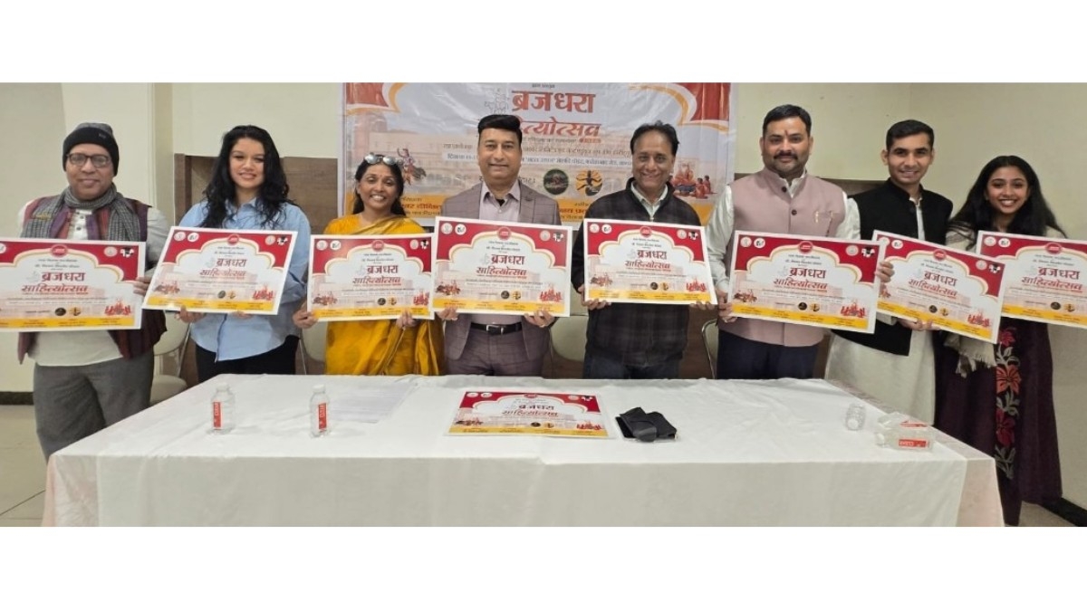 यह जानकारी धरा चेतना फाउंडेशन की अध्यक्ष दीपाली सिंह ने होटल ग्रांड में 08 फरवरी 2026 को आयोजित प्रेसवार्ता में दी, जहां ब्रज धरा साहित्य उत्सव का मशहूर मुख्य संरक्षक शेखर दीक्षित, डॉक्टर गिरधर शर्मा, बॉलीवुड गीतकार सुरेंद्र साथी और आयोजन समिति के सदस्यों द्वारा पोस्टर जारी किया गया। पोस्टर विमोचन में समन्वयक डॉ. महेश धाकड़, सचिव अक्षय प्रताप सिंह, कार्यक्रम प्रभारी गति सिंह, सहयोगी कृतिका कोरंगा भी शामिल रहे।