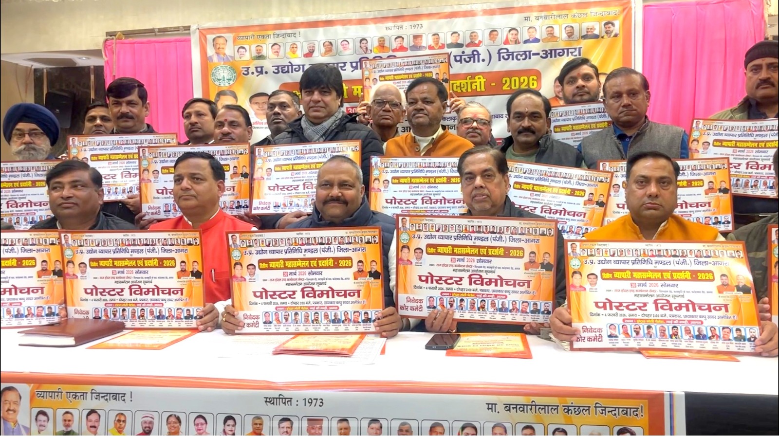 आगरा। उ. प्र. उद्योग व्यापार प्रतिनिधि मण्डल की ओर से द्वितीय व्यापारी महासम्मेलन एवं प्रदर्शनी का आयोजन होने जा रहा है। बुधवार को धाकरान स्थित होटल मोती पैलेस में आयोजित उद्घोषणा समारोह में मुख्य अतिथि एमएलसी विजय शिवहरे के साथ मण्डल पधारिकारियों ने सम्मेलन का पोस्टर जारी किया।