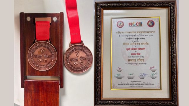 जोधपुर (राजस्थान), फरवरी 09: अन्तरराष्ट्रीय माहेश्वरी महाधिवेशन-MGC 2026 के गौरवमयी मंच पर भाविका माहेश्वरी को प्रतिष्ठित समाज गौरव अलंकरण से विभूषित किया गया। राजस्थान के राज्यपाल माननीय हरिभाऊ बागड़े, सुप्रीम कोर्ट जस्टिस दिनेश माहेश्वरी व जस्टिस जेके माहेश्वरी ने उन्हें इतनी कम उम्र में 500 से ज्यादा स्क्रीन एडिक्शन पर अवेयरनेस कार्यक्रम हेतु ग्लोबल सम्मान भेंट किया