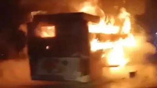 कुछ ही मिनटों में आग ने पूरी बस को अपनी चपेट में ले लिया। बस में रखा यात्रियों का सामान जलकर राख हो गया।