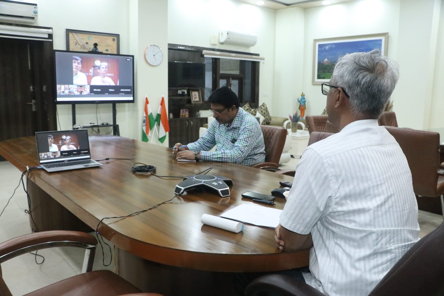 आगरा/मथुरा: जन्माष्टमी पर्व के अवसर पर ब्रज में होने वाले श्री कृष्ण जन्मोत्सव 2025 को लेकर मण्डल आयुक्त श्री शैलेंद्र कुमार सिंह जी ने वीडियो कॉन्फ्रेंसिंग के माध्यम से बैठक ली जिसमें डीआईजी आगरा जोन श्री शैलेश कुमार पांडेय, मथुरा जिलाधिकारी श्री सी पी सिंह, एसएसपी श्री श्लोक कुमार, मथुरा वृंदावन विकास प्राधिकरण के उपाध्यक्ष श्री एस बी सिंह, नगर आयुक्त श्री जगप्रकाश, एसपी ट्रैफिक एवं अन्य संबंधित विभागों के अधिकारी मौजूद रहे।