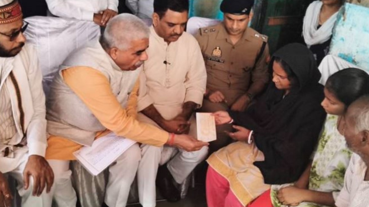 रायबरेली। उत्तर प्रदेश के रायबरेली जिले में मॉब लिंचिंग में मारे गए दलित युवक हरिओम वाल्मीकि के परिवार से मिलने शनिवार को योगी सरकार के मंत्री राकेश सचान और असीम अरुण पहुंचे। ऊंचाहार के नई बस्ती स्थित पीड़ित परिवार से मुलाकात कर दोनों मंत्रियों ने ढांढस बंधाया और सरकार की ओर से आर्थिक सहायता के रूप में 13.84 लाख रुपये की चेक सौंपी — जिसमें मृतक की पत्नी पिंकी वाल्मीकि और पिता गंगादीन को क्रमशः 6.92-6.92 लाख रुपये दिए गए।