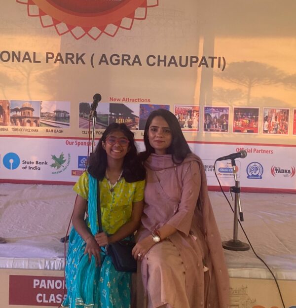 आगरा । ताजमहल के शहर आगरा में चल रहे ताज महोत्सव में संगीत प्रेमियों को मां-बेटी की जोड़ी शगुन गुप्ता और वेदांती गुप्ता ने एक के बाद एक परफॉर्मेंस दी। दोनों कलाकारों ने अपने कौशल का प्रदर्शन कर दर्शकों को मंत्रमुग्ध कर दिया।