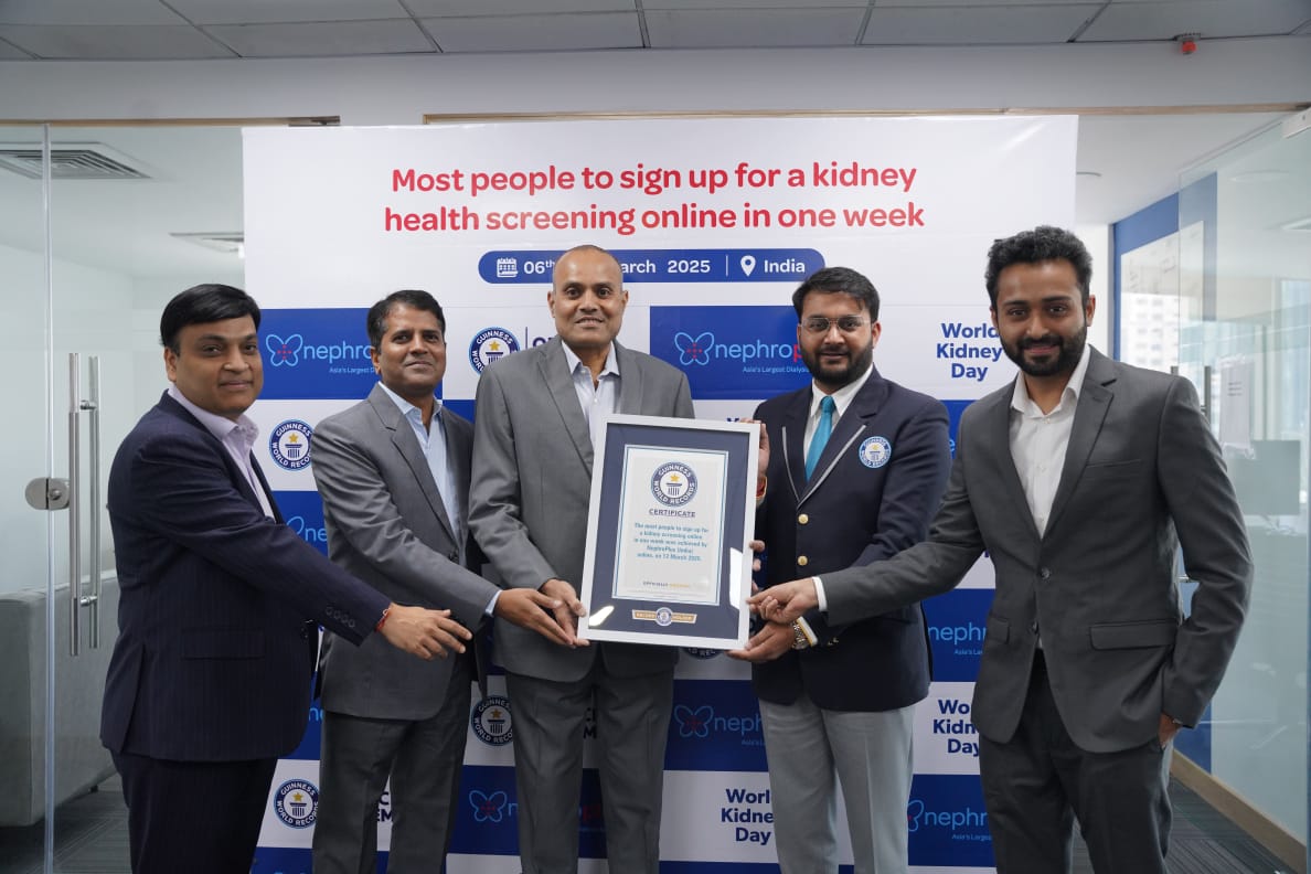 मुंबई (अनिल बेदाग): एशिया के सबसे बड़े डायलिसिस केयर नेटवर्क नेफ्रोप्लस ने ‘एक हफ्ते में सबसे अधिक हेल्थ स्क्रीनिंग साइन-अप्स’ के लिए गिनीज वर्ल्ड रिकॉर्ड बनाकर एक ऐतिहासिक उपलब्धि हासिल की है। इस रिकॉर्ड में 6 से 11 मार्च 2025 के बीच 10,500 साइन-अप्स हुए। इसके अलावा, नेफ्रोप्लस ने ‘कई स्थानों पर सबसे अधिक लोगों की सीरम क्रिएटिनिन टेस्टिंग’ के लिए इंडिया बुक ऑफ रिकॉर्ड्स में भी अपनी जगह बनाई।