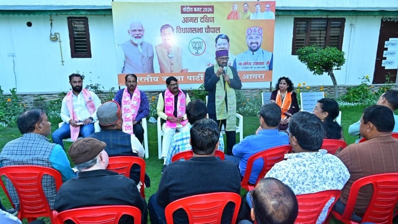 आगरा: दक्षिण विधानसभा क्षेत्र के जयपुर हाउस स्थित कैंप कार्यालय पर भारतीय जनता पार्टी द्वारा केंद्रीय बजट 2026 पर एक विशेष विचार गोष्ठी का आयोजन किया गया। इस कार्यक्रम में उत्तर प्रदेश सरकार के उच्च शिक्षा एवं कैबिनेट मंत्री योगेंद्र उपाध्याय ने कार्यकर्ताओं और पदाधिकारियों के साथ बजट के प्रावधानों पर विस्तृत चर्चा की।