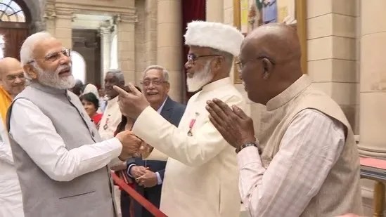 राष्ट्रपति द्रौपदी मुर्मू से पद्मश्री प्राप्त करने वाले कर्नाटक के दिग्गज बिदरी शिल्प कलाकार शाह रशीद अहमद कादरी ने बुधवार को प्रधानमंत्री नरेंद्र मोदी की जमकर तारीफ की। उन्होंने कहा कि उनका यह मानना गलत है कि भाजपा सरकार उन्हें इस प्रतिष्ठित नागरिक सम्मान से सम्मानित नहीं करेगी। राष्ट्रपति भवन में पद्म पुरस्कारों देने का समारोह समाप्त होने के बाद प्रधानमंत्री नरेंद्र मोदी ने केंद्रीय गृह मंत्री अमित शाह के साथ पुरस्कार विजेताओं से बातचीत की।