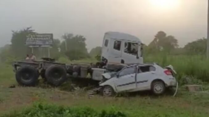 दौसा। राजस्थान के दौसा में भीषण सड़क हादसा हुआ है. खाटूश्याम मंदिर का दर्शन करके लौट रहे श्रद्धालुओं की कार एक ट्रक से टकरा गई. इस दौरान भीषण हादसा हो गया और 11 लोगों की मौत हो गई है.