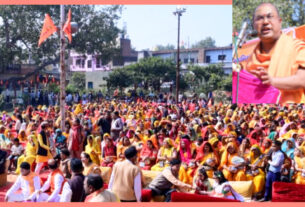 धर्मसभा में संत आवास बनाने की घोषणा, जयकारों से आकाश गुंजायमान किया
