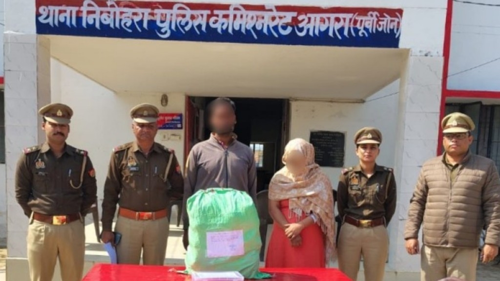 आगरा। जनपद में मादक पदार्थों की तस्करी रोकने के लिए चलाए जा रहे अभियान के तहत निबोहरा पुलिस को महत्वपूर्ण सफलता मिली है। पुलिस ने चेकिंग के दौरान एक शातिर तस्कर और उसकी महिला साथी को गिरफ्तार किया है। उनके कब्जे से 10 किलोग्राम 237 ग्राम अवैध गांजा, नकद राशि और तस्करी में प्रयुक्त मोटरसाइकिल बरामद हुई है।
