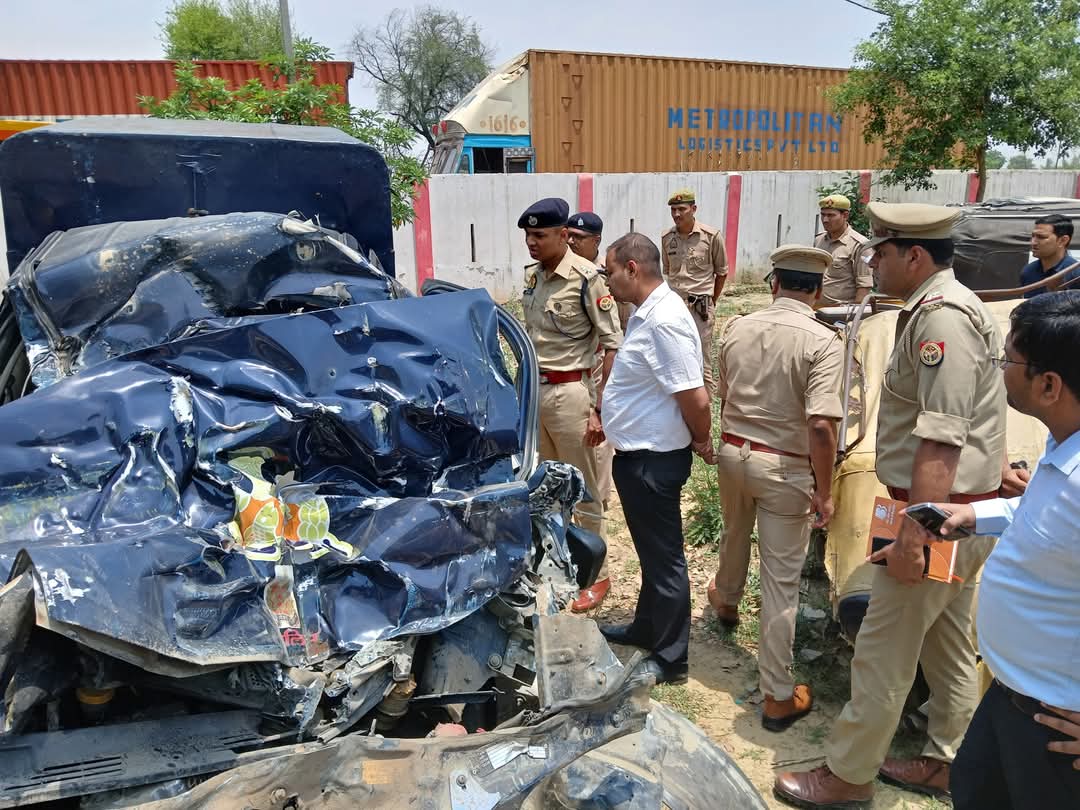 यूपी के अलीगढ़ के थाना लोधा क्षेत्र के बाईपास हाईवे के चिकावटी मोड़ पर फिरोजाबाद से बुलंदशहर मुलजिम लेकर जा रही पुलिस की वैन आज सुबह 8.15 बजे खड़े कैंटर से टकरा गई। हादसे में एक दरोगा, तीन पुलिसकर्मी सहित पांच की मौके पर दर्दनाक मौत हो गई। एक पुलिसकर्मी घायल है। सूचना पर पुलिस अधिकारी, फोर्स व क्रेन के साथ पहुंचे। पुलिस ने घायल सिपाही को उपचार के लिए मेडिकल कॉलेज में भर्ती कराया। शवों को पोस्टमार्टम को भेजने के साथ पुलिस अग्रिम कार्रवाई में जुट गई है।