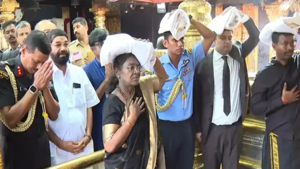 भारत की राष्ट्रपति द्रौपदी मुर्मू अपनी चार दिन की केरल यात्रा पर हैं। उन्होंने आज सबरीमाला स्थित भगवान अयप्पा मंदिर के दर्शन किए। इस दौरान उन्होंने अपने सिर पर एक पोटली रखी थी, जिसे उसे इरुमुडी कहा जाता है।