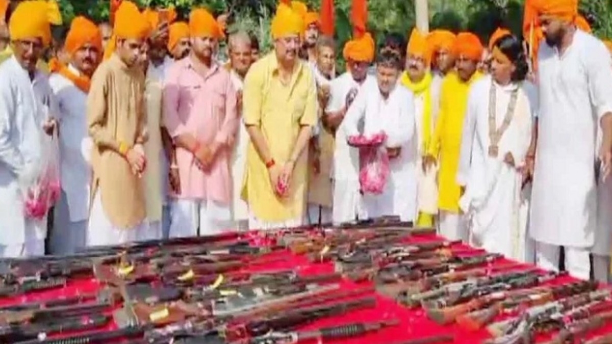 वीडियो में एक बड़ी मेज पर 200 से अधिक हथियार रखे हुए दिखाई दे रहे हैं, जिनमें बंदूकें और अन्य असलहे शामिल हैं। दशहरे पर शस्त्र पूजन सनातन धर्म की प्राचीन परंपरा है और राजा भैया हर साल यह अनुष्ठान करते हैं।