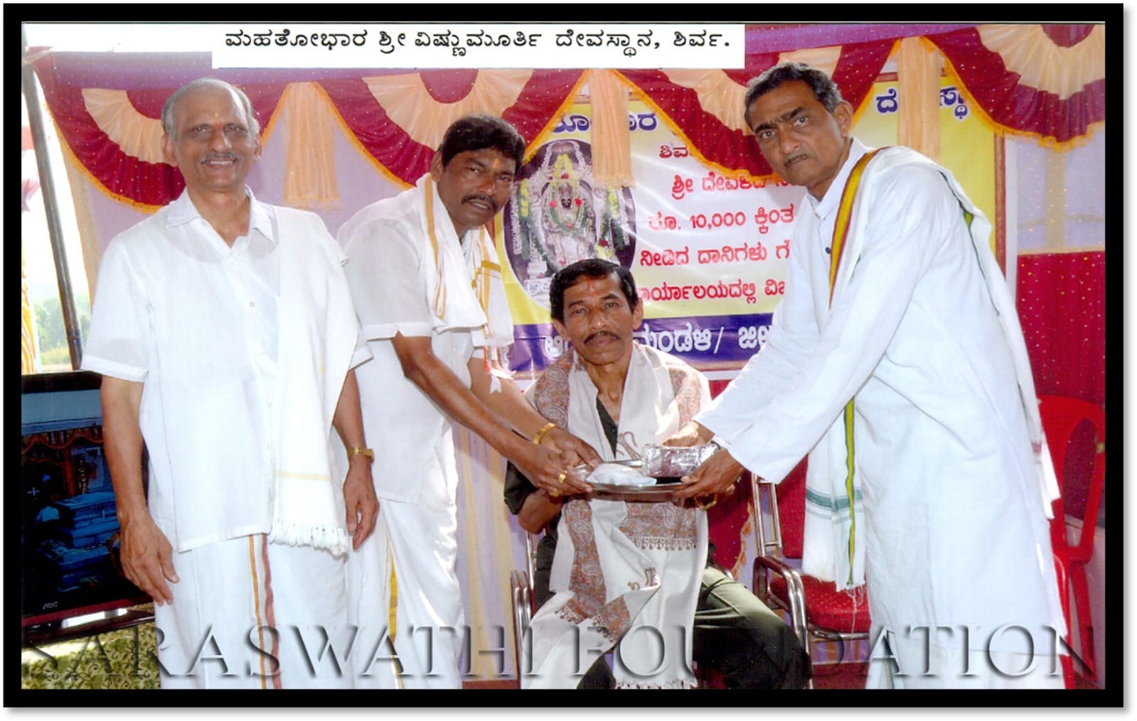 सरस्वती फाउंडेशन ने विष्णुमूर्ति मंदिर के जीर्णोद्धार में मदद की है और उन्हें दूसरों से सहयोग प्राप्त करने में भी मदद की है, साथ ही मंदिर के उद्घाटन का कवरेज टीवी 9 कर्नाटक पर करवाने में भी कामयाब रहे हैं और इसे यूट्यूब पर भी अपलोड किया गया है।