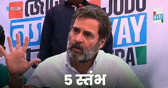 राहुल गांधी ने कहा, ‘भारत जोड़ो न्याय यात्रा’ के पीछे न्याय की सोच है। जिसके 5 स्तंभ हैं। 1. युवा न्याय 2. भागीदारी 3. नारी न्याय 4. किसान न्याय 5. श्रमिकों के लिए न्याय। इन सभी मुद्दों को ध्यान रखते हुए कांग्रेस पार्टी एक कार्यक्रम आपके सामने एक महीने में रखेगी।