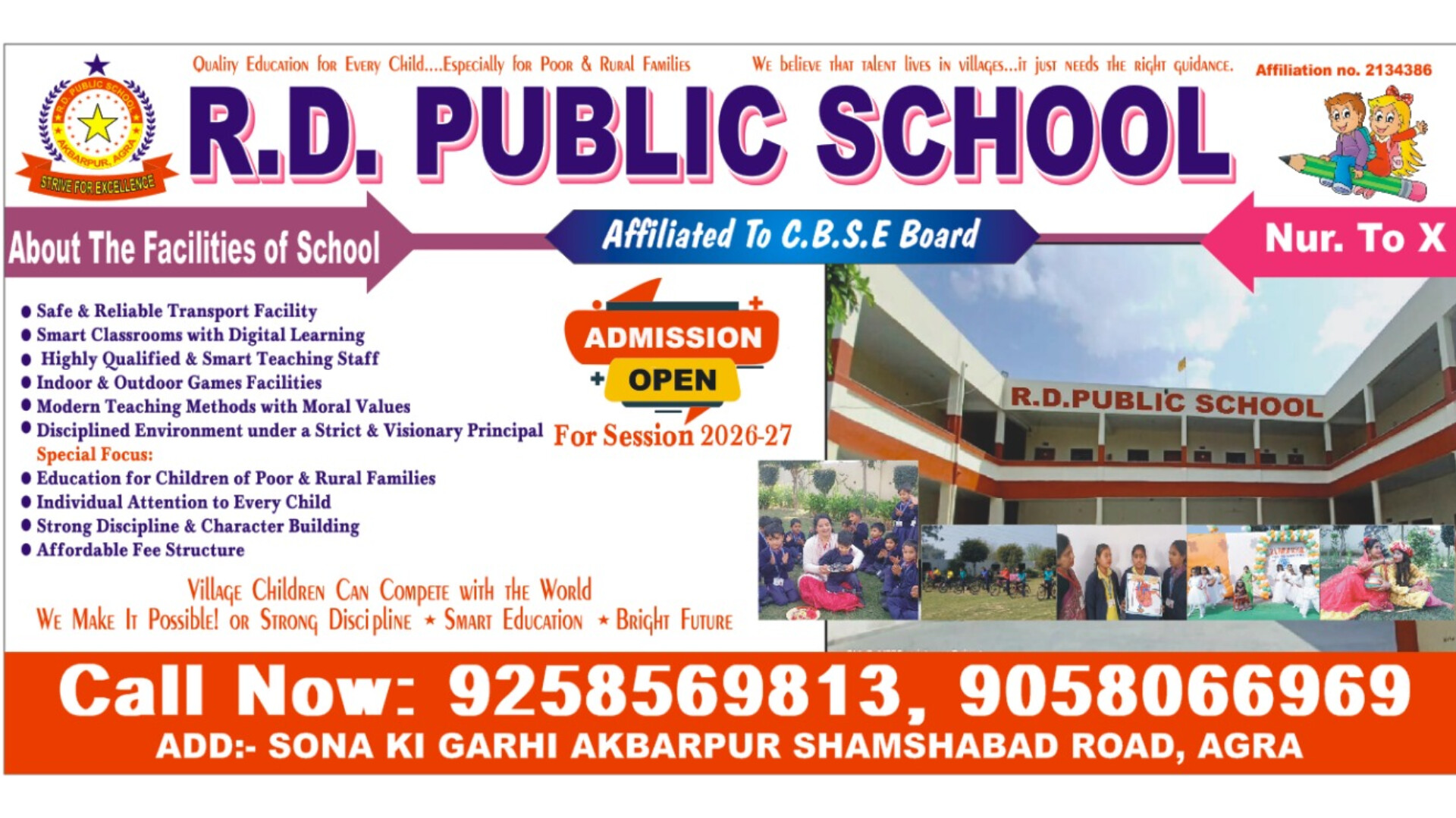 आगरा में ग्रामीण बच्चों की शिक्षा को नई दिशा देने की पहल, आर.डी. पब्लिक स्कूल ने खोले अवसरों के दरवाजे
