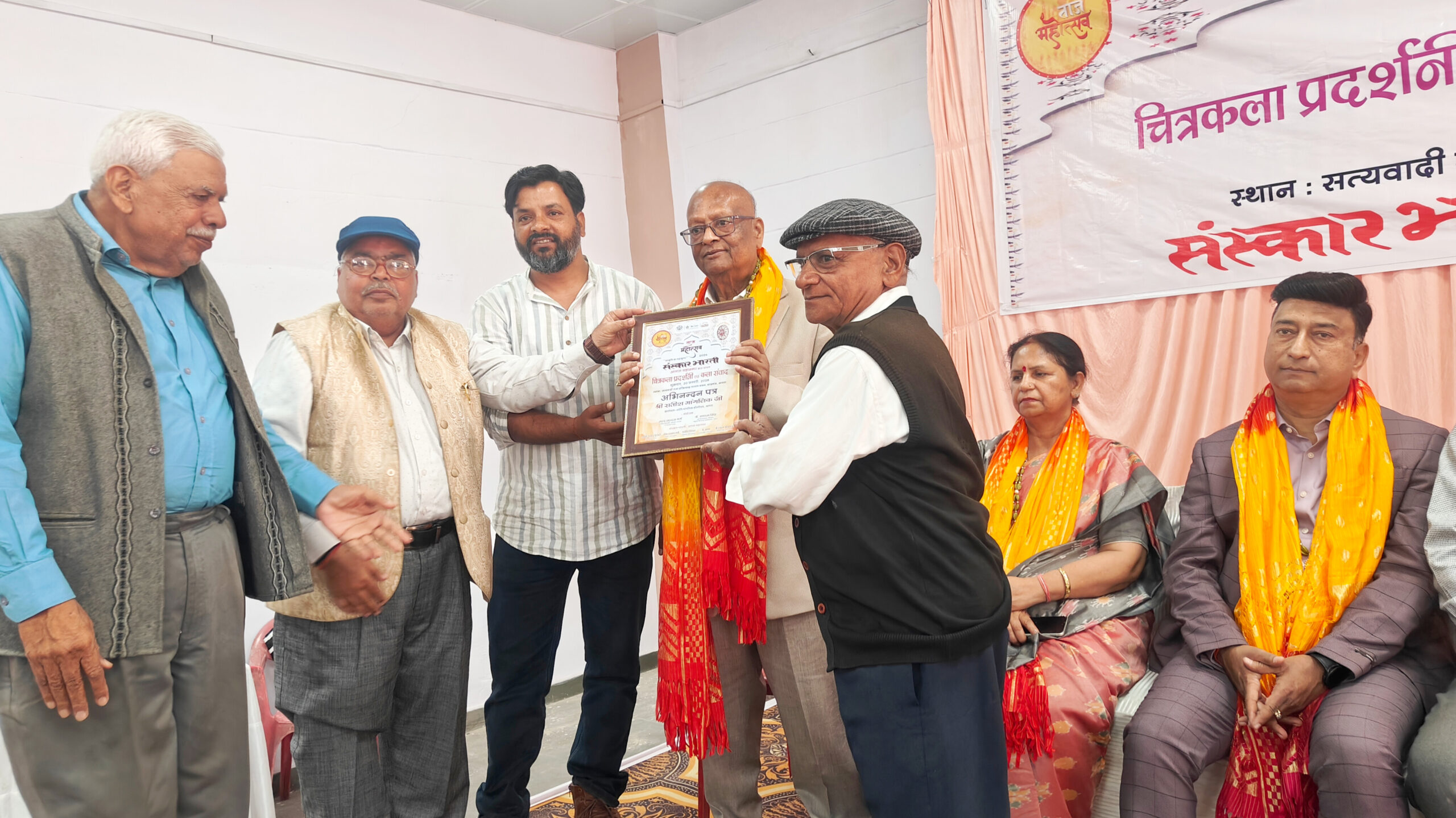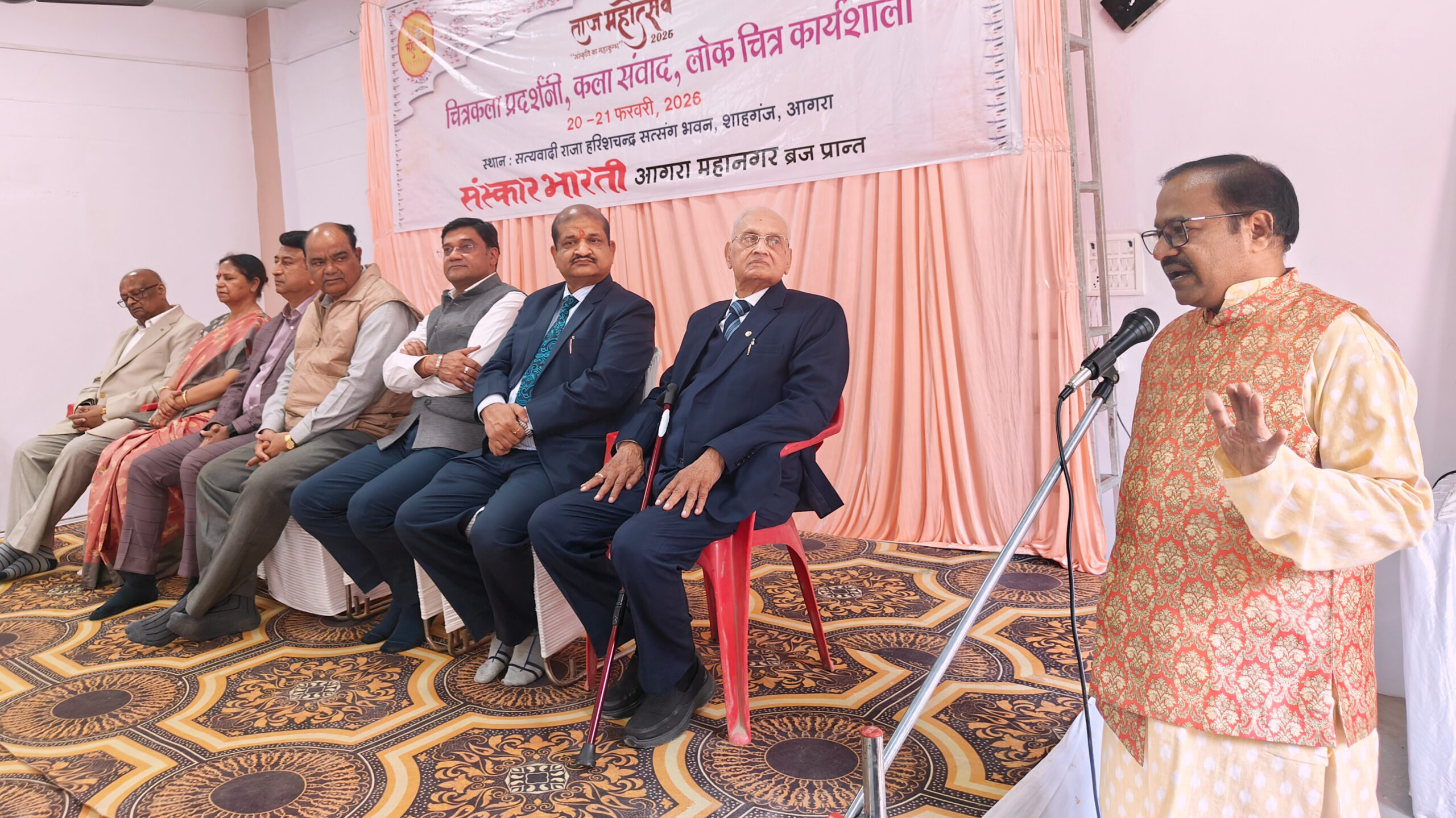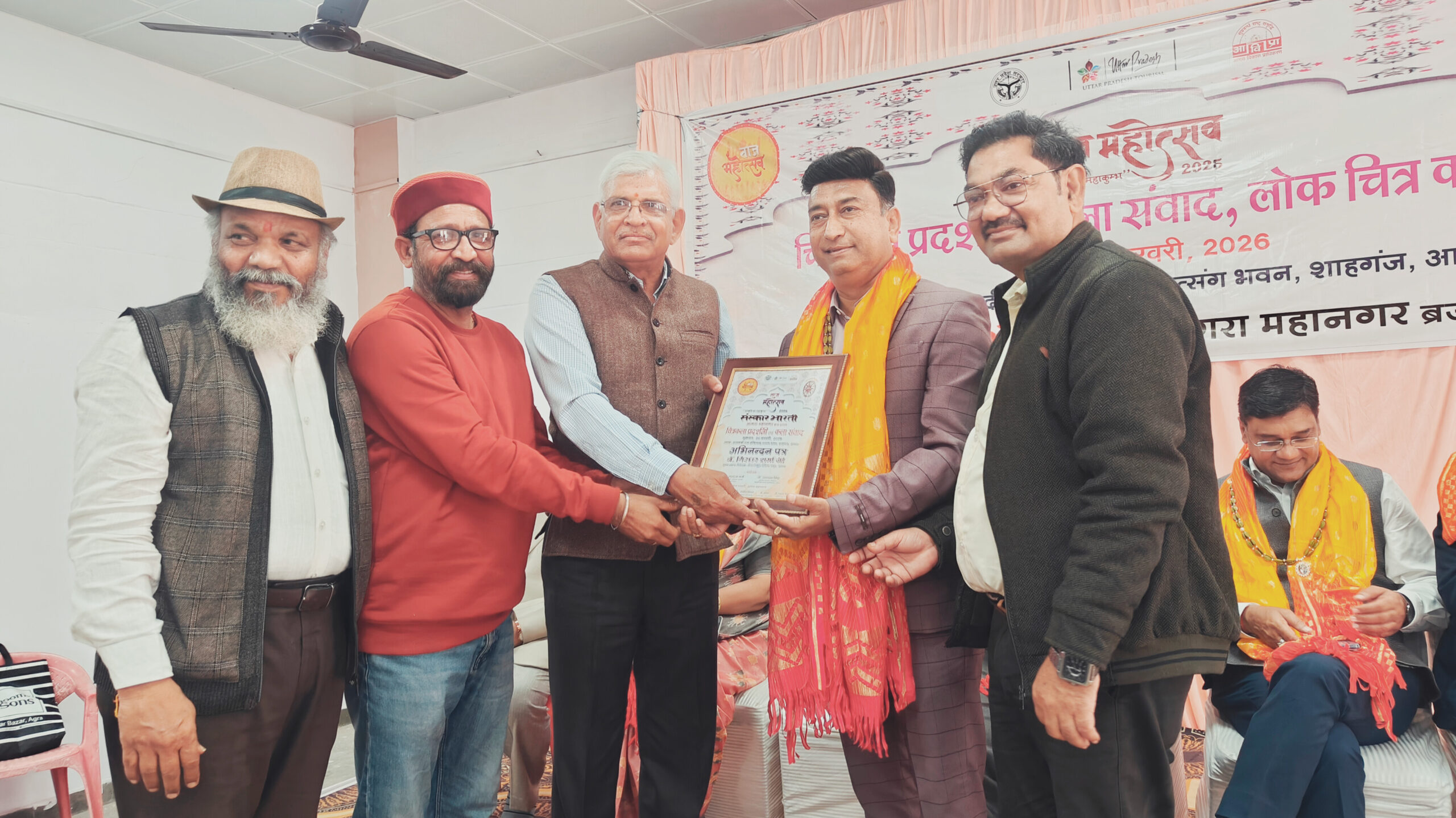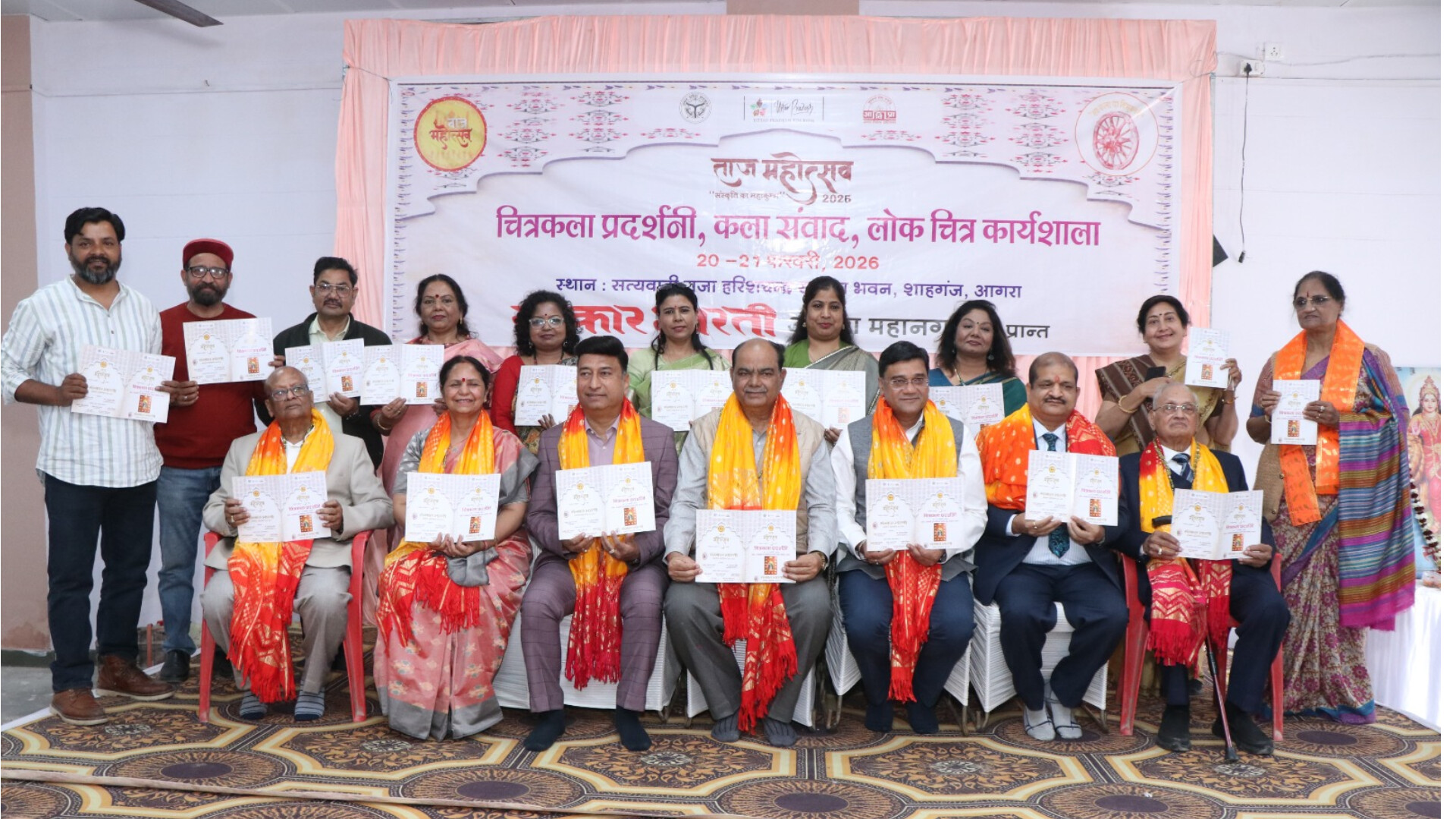 Agra, Uttar Pradesh, India, Bharat. जिला प्रशासन आगरा द्वारा आयोजित “ताज महोत्सव” के अन्तर्गत “संस्कार भारती” ने 20 फरवरी 2025 को सत्यवादी राजा हरिश्चंद्र भवन, शाहगंज, आगरा पर “चित्रकला प्रदर्शनी” एवं कला संवाद का आयोजन किया। इस दौरान मोदी की सराहना की गई। कलाओं को सुरक्षित करने के लिए संस्कार भारती को भी मुक्त कंठ से सराहा गया। वक्ताओं ने अनेक सुझाव भी दिए।