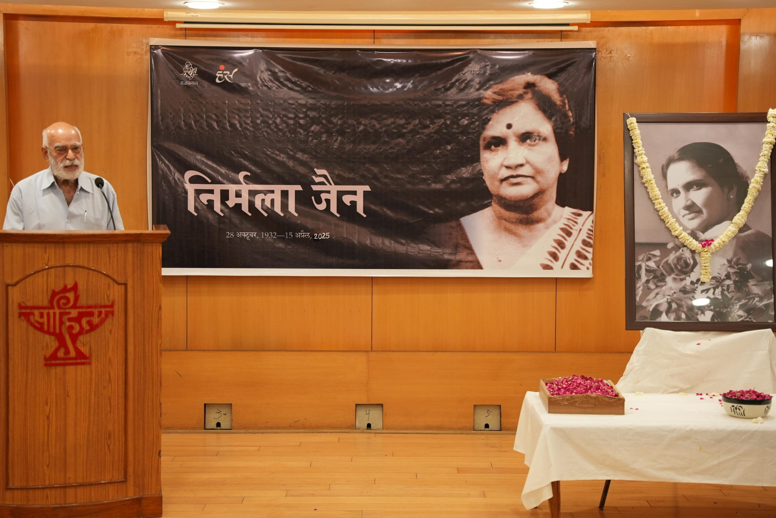 डॉ. निर्मला जैन की स्मृति में 23 अप्रैल की शाम साहित्य अकादेमी सभागार में श्रद्धांजलि सभा का आयोजन किया गया। यह आयोजन राजकमल प्रकाशन और हंस मासिक पत्रिका के संयुक्त तत्वावधान में सम्पन्न हुआ। इस अवसर पर अनेक साहित्यकारों, शिक्षकों और चिन्तकों ने डॉ. जैन को एक ऐसी विदुषी के रूप में स्मरण किया जिन्होंने अपने साहित्यिक और अध्यापकीय जीवन में साहस, सादगी और स्वायत्तता का आदर्श प्रस्तुत किया।