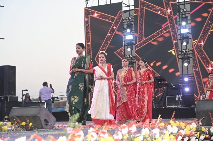 मंच पर जब महाराष्ट्र की पहचान ‘नौवारी साड़ी’ और कोल्हापुरी चप्पलों में सजी मॉडल उतरीं, तो गणेश उत्सव की छटा बिखर गई। वहीं, राजस्थान की गणगौर परंपरा के घाघरा-चोली और गोटा-पत्ती की कारीगरी ने रेगिस्तानी संस्कृति की मिठास घोली। पंजाब की फुलकारी और चटख रंगों की पटियाला सलवार ने बैसाखी का उल्लास भरा, तो बंगाल की तांत और जमदानी साड़ियों ने दुर्गा पूजा की सौम्यता को रैम्प पर उतारा।