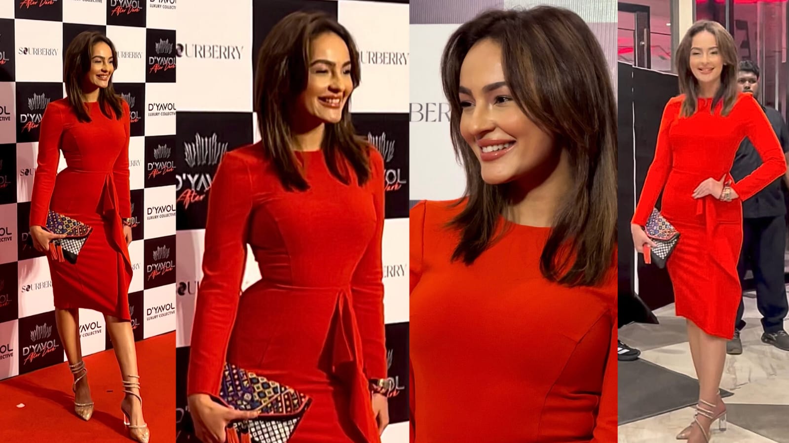 सीरत पार्टी में लाल रंग की स्टाइलिश बॉडीकॉन ड्रेस में पहुंचीं। असिमेट्रिक नेकलाइन, लंबे स्लीव्स और हिप पर आकर्षक रफल डिज़ाइन ने उनके लुक को बेहद मॉडर्न और ग्लैमरस बना दिया। फ्रंट क्रॉसओवर हेम ने आउटफिट में एक अनोखा ट्विस्ट जोड़ा, जिससे उनका पूरा लुक और भी एलीगेंट नजर आया।