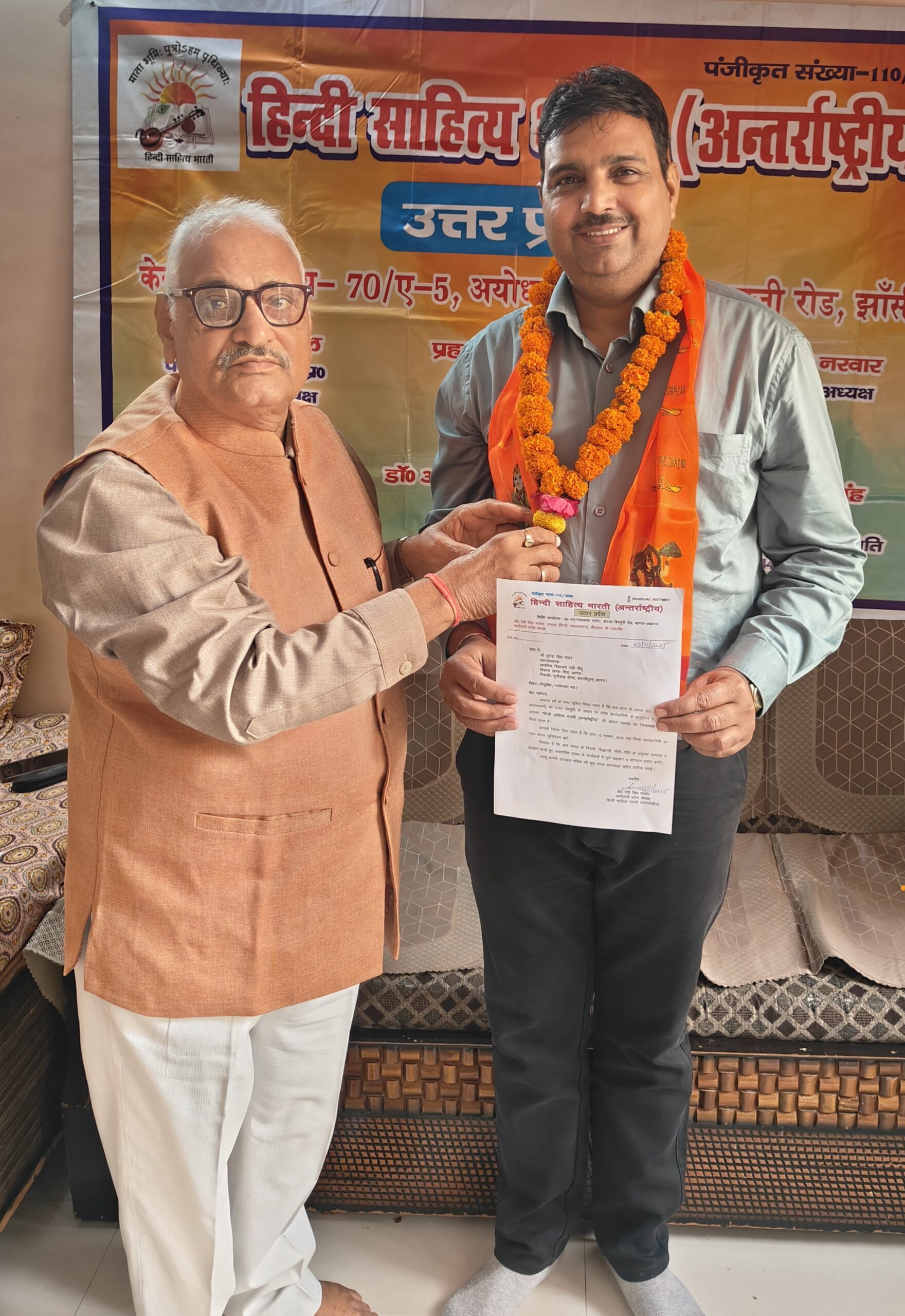 सुरेन्द्र सिंह चाहर बने अन्तर्राष्ट्रीय हिन्दी साहित्य भारती के आगरा जिलाध्यक्ष