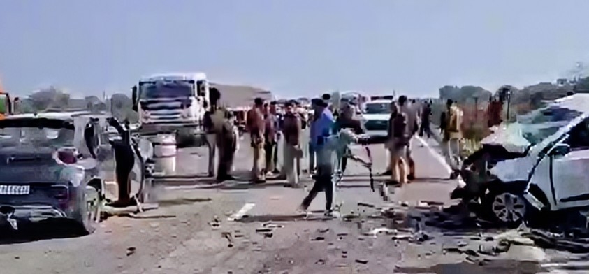 दुर्घटना एक्सप्रेसवे के किलोमीटर 18 माइल स्टोन के पास उस समय हुई जब कार्यदायी संस्था एटलस द्वारा रखरखाव का कार्य चलते हुए सड़क को वन-वे किया गया था। सड़क पर खाली ड्रम रखे गए थे। इसी सकरे हुए रास्ते पर तीन कारें आपस में टकरा गईं। टक्कर इतनी जोरदार थी कि दो कारों में सवार चार लोग गंभीर रूप से घायल हो गए।