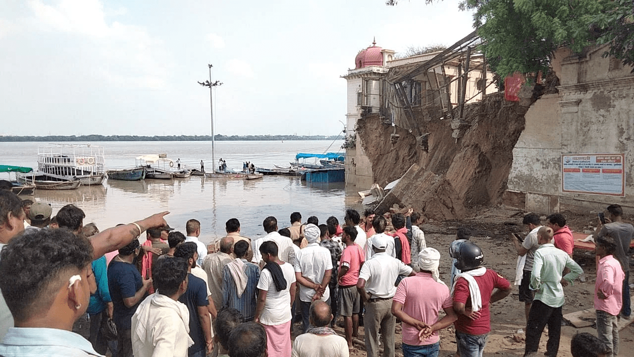 वाराणसी जिले में हरिश्चंद्र घाट के समीप स्थित कर्नाटक स्टेट गेस्ट हाउस के पूर्वी और उत्तरी हिस्से की दीवार अचानक गंगा में समा गई। ध्वस्त दीवार का मलवा 100 मीटर दूर जा गिरा। जिससे वहां मौजूद कल्लू साहनी (25), वैशाख गिरी (60) और श्याम गिरी (30) घायल हो गए। घायलों को आनन- फानन स्वामी विवेकानंद अस्पताल भेलूपुर भेजा गया। यहां से सभी को ट्रामा सेंटर रेफर कर दिया गया। इसमें कल्लू की हालत गंभीर बनी हुई है।