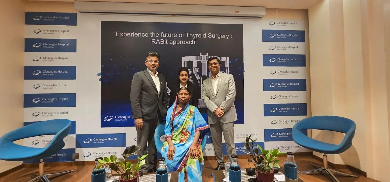 मुंबई: महाराष्ट्र के कोल्हापूर जिल्हे वारणानगर में रहनेवाली 60 वर्षीय किसान महिलापर मुंबई में रोबोटिक तकनीकद्वारा ब्रेस्ट एक्सिलो इनसफ्लेशन थायरॉयडेक्टॉमी सर्जरी की गई है। परेल स्थित ग्लेनईगल्स अस्पताल में इस महिला का इलाज किया गया है। रोबोटिक के सहायता से पहली बार यह थायराइड सर्जरी की गई है.