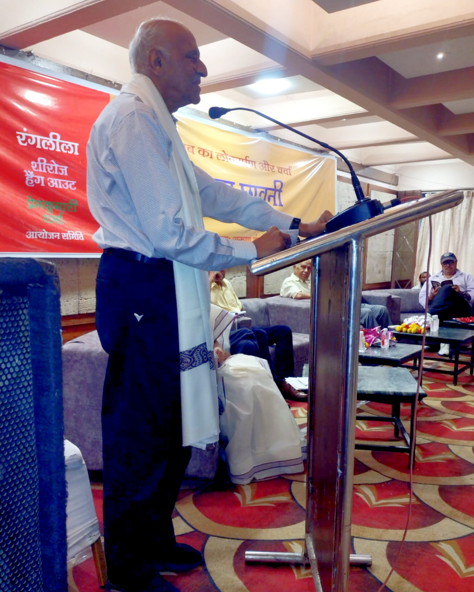 कार्यक्रम का संचालन प्रोफेसर नसरीन बेगम ने किया, जबकि विषय प्रवर्तन और धन्यवाद ज्ञापन प्रोफेसर प्रियम अंकित ने। आयोजकों रंगलीला के निर्देशक अनिल शुक्ल, रामभरत उपाध्याय तथा डॉक्टर महेश धाकड़ ने अतिथियों का हार्दिक स्वागत किया। इस अवसर पर डॉक्टर सीपी राय, राजगोपाल वर्मा, प्रोफेसर ज्योत्सना रघुवंसी, डॉक्टर मधु भारद्वाज, डॉक्टर मुनीश्वर गुप्ता, श्रीकृष्ण, कर्नल जीएम खान, भावना रघुवंशी, प्रो. आभा चतुर्वेदी, अनिल डंग, मनोज सिंह, डॉक्टर शैलबाला अग्रबाल, संजय गुप्त, वरिष्ठ पत्रकार और लेखक डॉक्टर भानुप्रताप सिंह, मनोज शर्मा, सुनीता चौहान, ब्रजबिहारी लाल, डॉक्टर राजीव शर्मा, अभिनय प्रसाद, शंकरदेव तिवारी, रमेश पण्डित, महेश आलोक, हिना खान सहित अनेक बुद्धिजीवी उपस्थित रहे।