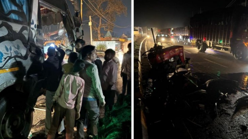 आगरा जयपुर हाईवे पर बस की टक्कर से दो हिस्सों में बंटा ट्रैक्टर, चालक हुए घायल, कोई जनहानि नही