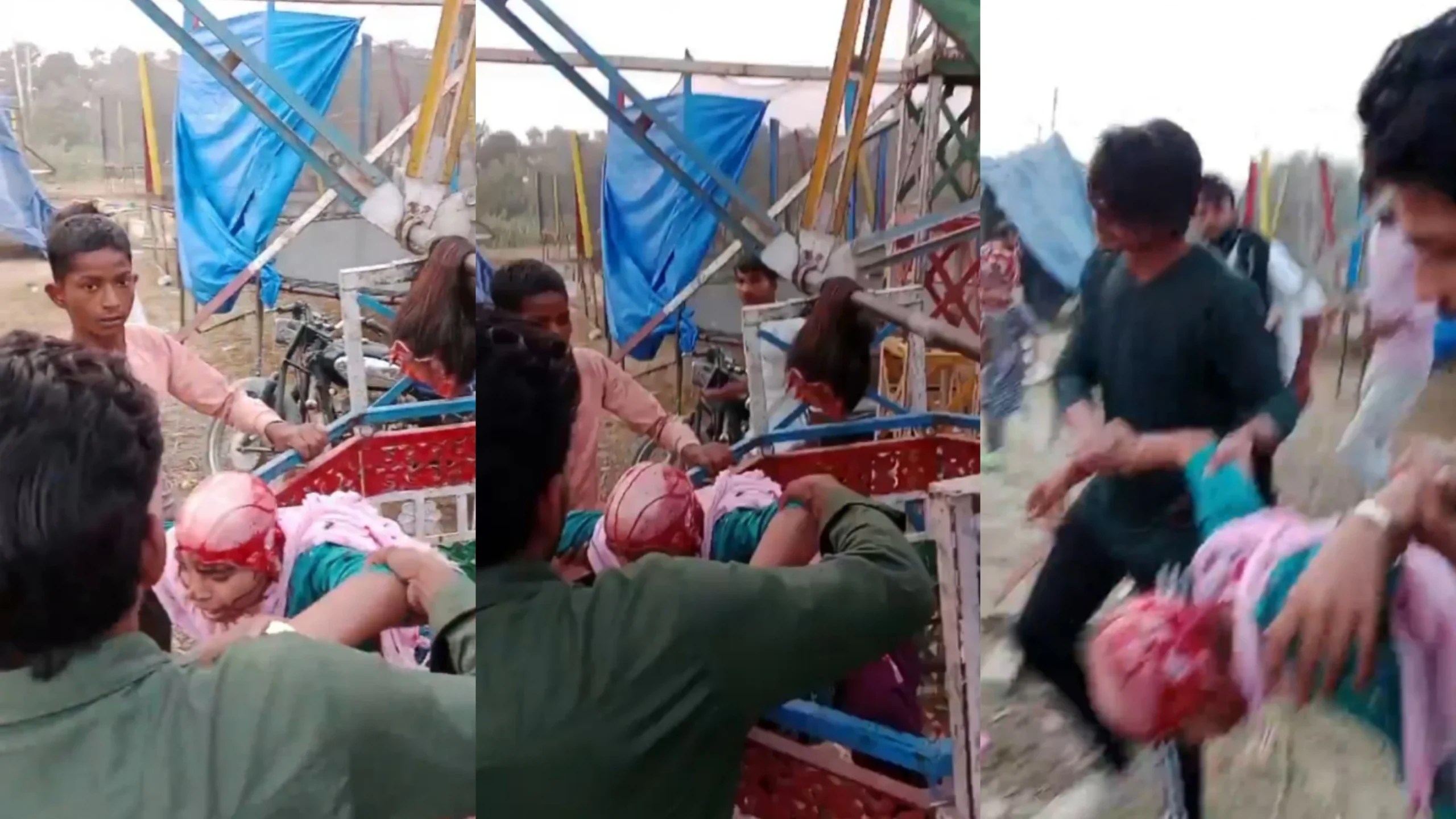 उत्तर प्रदेश के कन्नौज जिले में खौफनाक हादसा हो गया। यहां झूला झूलते समय युवती के बाल झूले में फंसने से उसे सारे बाल जड़ से सिर से अलग हो गए। पूरे सर में खून ही खून हो गया। मौके पर मौजूद जिसने भी इस घटना को देखा उनकी रुह कांप गई।