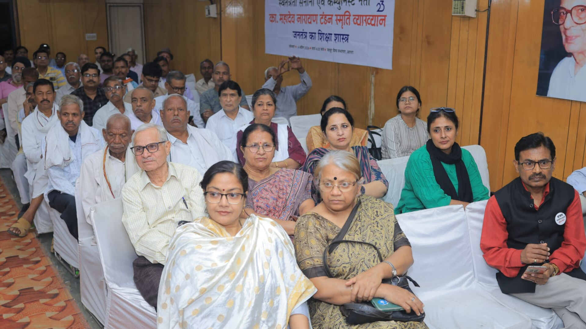 आगरा के माथुर वैश्य सभागार, पचकुइयां में आज़ादी के सिपाही, मार्क्सवादी विचारक और शोषितों के मसीहा महादेव नारायण टंडन की 23वीं पुण्यतिथि पर भावपूर्ण कार्यक्रम आयोजित हुआ। डॉ. जी. यू. कुरैशी (पूर्व प्राचार्य एस.एन. मेडिकल कॉलेज), प्रो. अपूर्वानंद, कामरेड पूरन सिंह और भावना जितेंद्र रघुवंशी ने उनके चित्र पर माल्यार्पण कर भावभीनी श्रद्धांजलि अर्पित की।