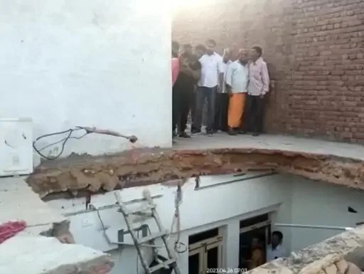 हादसे में महिला सुरभि अग्रवाल पत्नी विष्णु अग्रवाल, उसका पुत्र आरुष (5), पुनीत (17) पुत्र ब्रजेश समेत तीन लोग मलबे में दबकर घायल हो गए। घटना के बाद आसपास के लोग जमा हो गए।