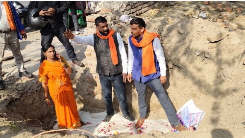 प्रतीकात्मक विरोध—यमुना किनारे खोदी गई ‘कब्र’