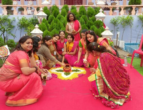 गुरुवार को पुष्पांजलि हाइट स्थित मंदिर में तुलसी शालिग्राम विवाह स्थल को फूलों की रंगोली से सजाया गया। इसके बाद श्री राम जानकी और चारों भाइयों के स्वागत में जनक महल पर फूलों और रंगों से रंगोली सजाई। करीब 60 फीट के क्षेत्र को मटकी और और दीपों से भी सजाया गया। इस बीच बारिश ने भी रंगोली सेवा को रोकने का भरपूर प्रयास किया लेकिन सदस्याओं का जोश था कि रंगोली खराब होने पर भी सभी बार बार धरा को अपने उत्साह के रंग सजाती रहीं। रंगोली टीम में प्रेरणा सिंह, पल्लवी, अग्रवाल, अंशिका मित्तल, कशिश नैनानी, हिमांशी सिंह, रजनी यादव, डॉ आभा, गीता सैनी, कुसुम सैनी, शिखा गौतम, किरण लालवानी, क्षमा दुबे, संजय और सतीश का सहयोग रहा।
