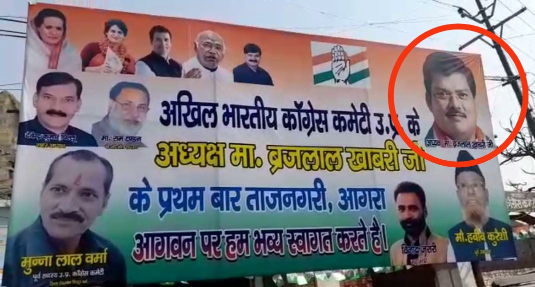 बृजलाल खाबरी जो इस समय कांग्रेस के प्रदेश अध्यक्ष है। हाल ही में कांग्रेस हाईकमान ने उन्हें नए प्रदेश अध्यक्ष की कमान सौंपी है। कांग्रेस के प्रदेश अध्यक्ष चुने जाने के बाद बृजलाल खाबरी पहली बार आगरा आए थे। उनके स्वागत और सत्कार के लिए कांग्रेस के कई कार्यकर्ताओं ने जगह-जगह होर्डिंग भी लगवाए। एक कार्यक्रम उनका कार्यालय उद्घाटन का भी था। वहां पर भी कांग्रेस के कार्यकर्ताओं ने उनके स्वागत के लिए होर्डिंग्स लगवा दिए।